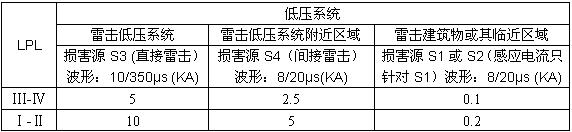 在LPZ0B(LPZ1或更高的防護區)之內的各種線路浪涌主要來自LEMP感應產生的,就應選用In(8/20μS)測試的SPD或用組合波(1.2/50μS, 8/20μS)測試的SPD。