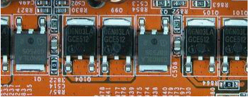 一般主板燒壞,維修人員最先檢查的都是Mosfet。質量不好的Mosfet在長時間使用的時候,會非常燙手,甚至有燒毀的可能。所以,選購主板,觀察Mosfet這個環節上,最好考慮Philips,Infineon,IR的品牌,其次考慮Alpha,ST,ON這些品牌。如下圖所示: