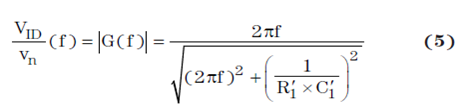 將差動網(wǎng)絡轉(zhuǎn)換為單端網(wǎng)絡(請參見圖 4),簡化了 G (f) 的推導過程,但卻要求 C′1 = 2C1,R′1= R1/2,C′2 = 2C2,以及 R′2 = R2/2。