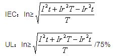 如果保險絲通以一定的電流(Ix)可以永久工作,那么此時保險絲的聚熱與散熱一定處于平衡狀態(tài),此時保險絲的散熱功率為Ix2T。如果尖峰電流產(chǎn)生的能量≤Ix2T,可以認為尖峰電流產(chǎn)生的能量不可能使保險絲的溫升大于Ix時的溫升。對于滿足不同的安規(guī)體系,Ix的數(shù)值有所區(qū)別,IEC體系下可以認為等于In;UL體系下可以認為等于75%In。