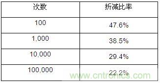 2.2 如果要達到2萬小時的壽命,保險絲需要經(jīng)受近100億次的沖擊,而此數(shù)據(jù)很難利用實驗數(shù)據(jù)達到,所以在此根據(jù)已有的信息作趨勢分析。分析步驟如下: