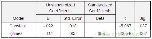 lg(ratio) = -0.092 – 0.111*lg(times),通過t檢驗,此方程關(guān)系非常顯著,如下表。