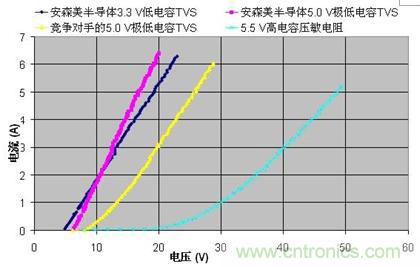 圖5:不同ESD保護(hù)元件的TLP測試I-V曲線