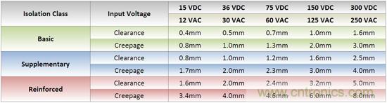 這就是為什么UL定義了三種不同的隔離等級(jí),明確提出電氣間隙和爬電距離。電氣間隙是兩點(diǎn)之間的直線距離,爬電距離是沿著表面的路徑。要符合最低UL“基礎(chǔ)”等級(jí),一個(gè)24VDC輸入電壓的轉(zhuǎn)換器,它的電氣間隙和爬電距離分別是0.5mm和1.0mm。要達(dá)到“補(bǔ)充”等級(jí),這些值要翻倍達(dá)到1.0mm和2.0mm。要達(dá)到加強(qiáng)隔離的最高等級(jí),上述的轉(zhuǎn)換器必須要滿足2.0mm和4.0mm的電氣間隙和爬電距離,這已是“基礎(chǔ)”等級(jí)的四倍了。