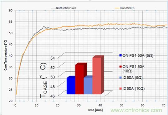 安森美半導體的客戶已成功使用其場截止型第一代IGBTNGTB50N60FLWG開發出了各種應用,如功率10 千伏安、功率因數0.9的不間斷電源,以及采用半橋諧振拓撲結構的1450瓦廚用電爐。客戶認為,安森美半導體場截止型第一代IGBT的性能達到了市場上最好的性能;其IGBT在電磁爐上的溫升低于其它2款IGBT。