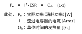 交流電流通過(guò)此類電容器時(shí),會(huì)因電容器的電阻成分(ESR),產(chǎn)生式.1-1中所示的功率消耗Pe,則電容器發(fā)熱。