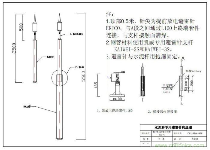 此設(shè)計圖適用于線路鐵塔(等級10KV-500KV),在個別鐵塔無法安裝避雷線(地線)的時候更是唯一的防雷擊解決辦法。我公司與電力設(shè)計院公司聯(lián)合研發(fā)設(shè)計的此種保護(hù)方式在一些常規(guī)條件下無法安裝避雷地線的情況下得到大量使用,實踐證明了此種設(shè)計的科學(xué)性和安全性。