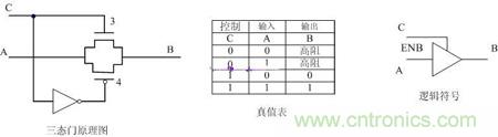這個器件也稱作“帶控制端的傳輸門”。帶有一定驅(qū)動能力的三態(tài)門也稱作“緩沖器”,邏輯符號是一樣的。