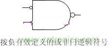 上述圖中畫的邏輯器件符號均是正邏輯下的輸入、輸出關(guān)系,即對“1”(高電平)有效而言。而單片機(jī)中的多數(shù)控制信號是按照負(fù)有效(低電平有效)定義的。例如片選信號CS(Chip Select),指該信號為“0”時具有字符標(biāo)明的意義,即該信號為“0”表示該芯片被選中。因此,“或非”門的邏輯符號也可以畫成下圖。