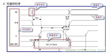 發(fā)現(xiàn)了么,寫指令和寫數(shù)據(jù),差別僅僅在于RS的電平不一樣而已。以下是LCD1602的時序圖: