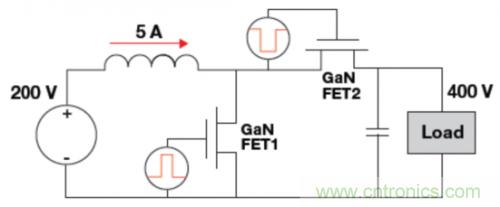 圖2:一個簡單的升壓轉換器拓撲。