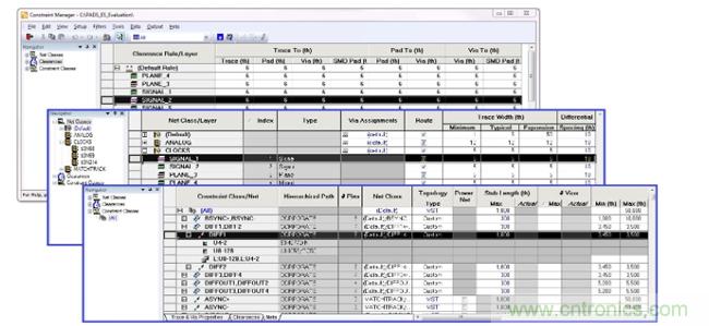 當(dāng)今的關(guān)鍵高速設(shè)計(jì)異常復(fù)雜,如果沒有有效的手段來管理約束規(guī)則,則對(duì)走線、拓?fù)浜托盘?hào)延遲等方面的設(shè)計(jì)、約束和管理將會(huì)變得異常困難。為了在第一次迭代中就構(gòu)建出成功的產(chǎn)品,必須在設(shè)計(jì)流程的早期設(shè)置約束規(guī)則,以便設(shè)計(jì)達(dá)到要求的目標(biāo)。良好的約束規(guī)則管理可防止您使用價(jià)格高昂或無法采購到的元件,并且最終確保電路板符合性能和制造要求。