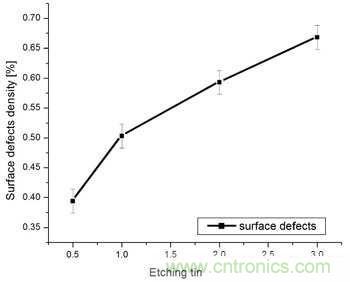 圖2.表面缺陷密度與蝕刻時間呈函數關系。