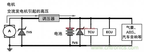 現(xiàn)代汽車設(shè)計(jì)中,所有車載電子設(shè)備都要連接電池和交流發(fā)電機(jī)。交流發(fā)電機(jī)是電氣瞬態(tài)的主要來(lái)源,其中最 糟的是拋負(fù)載。這種情況發(fā)生在電池已經(jīng)斷開而交流發(fā)電機(jī)正在發(fā)電、其他負(fù)載還在交流發(fā)電機(jī)環(huán)路上時(shí)。如果置之不理,電氣尖峰和瞬態(tài)將沿著電線傳遞,導(dǎo)致個(gè)別電子設(shè)備和傳感器故障,或永久損壞汽車的電子系統(tǒng)。當(dāng)然,拋負(fù)載失控還會(huì)威脅車輛本身的安全性和可靠性。