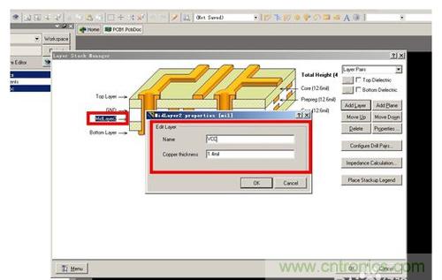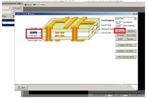 可以看到目前只有兩個層Top Layer 和 Bottom Layer。可以看見右側(cè)有Add Layer選項。