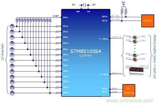 相較于機械式按鍵和電阻式觸摸按鍵,電容式觸摸按鍵不僅耐用,造價低廉,機構簡單易于安裝,防水防污,而且還能提供如滾輪、滑動條的功能。但是電容式觸摸按鍵也存在很多的問題,因為沒有機械構造,所有的檢測都是電量的微小變化,所以對各種干擾敏感得多。ST針對家電應用特別是電磁爐應用,推出了一個基于STM8系列8位通用微控制器平臺的電容式觸摸感應方案,無需增加專用觸摸芯片,僅用簡單的外圍電路即可實現電容式觸摸感應功能,方便客戶二次開發。