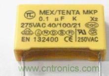 C1: 降壓電容,利用較大的容抗限制電路總電流。常用聚酯電容(CL21)、聚丙烯電容(CBB21)、安規電容(X2) ,容值依負載需求而定,此電容容量越大電路越不安全,在設計此電路時,如果220VAC供電情況下容量超過2.5uF,110VAC供電情況下容量超過4uF就因該放棄阻容降壓考慮其它電路。此處選用0.56uF安規電容(X2),提供19mA電流。