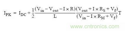 其中,Rs為感應電阻阻抗加電感繞線電阻的阻。Vf 是肖特基二極管的正向壓降。R是Rs加MOSFET導通電阻,R=Rs+Rm。