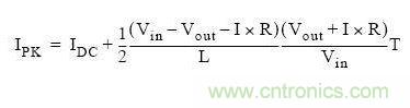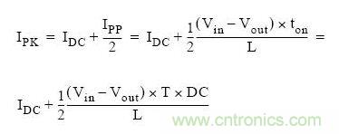 通過上圖我們可以看到,流過電感的最大電流為DC電流加開關峰峰電流的一半。上圖也稱為紋波電流。根據上述的公式,我們可以計算出峰值電流: