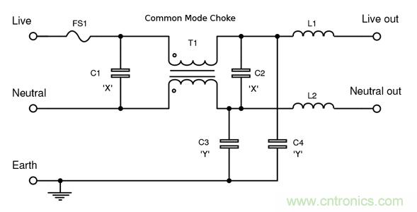 圖3:用于EMI抑制的X型和Y型電容。