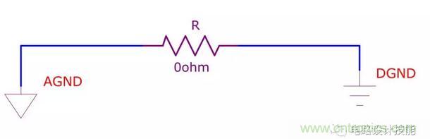 用于信號完整性的模擬地和數(shù)字地的單點連接 - 有人說0?跟沒有一樣,干嘛不直接連接上?想象一下如果你在電路原理圖里沒有這個0?的電阻,做PCB Layout的時候就可能忽略這個單點連接的原則,CAD軟件也會亂連在一起,達不到你單點連接的初衷。當然單點連接的時候你也可以用磁珠,我個人的觀點其實連接點的位置選擇好的話,磁珠除了比電阻貴之外,沒有什么好處,實際的操作中你可以用比較小的封裝的0?電阻,比如0402、0201,焊接的時候直接用烙鐵將兩端搭接在一起就可以,連電阻也省了;