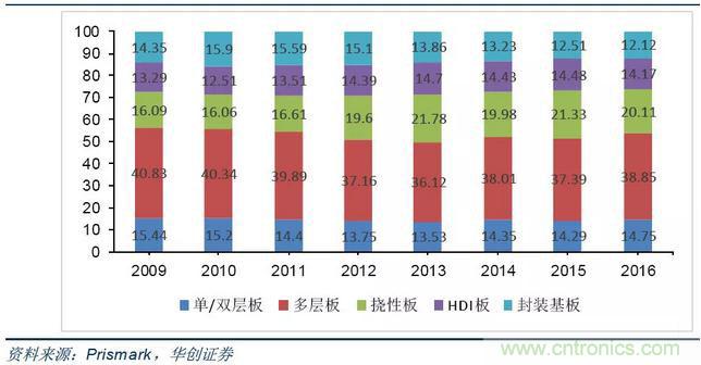 在計算機(jī)應(yīng)用領(lǐng)域,PCB產(chǎn)值占比由2009年的32%逐步下降至2016年的27%。主要由于計算機(jī)產(chǎn)業(yè)今年來增長逐步放緩;