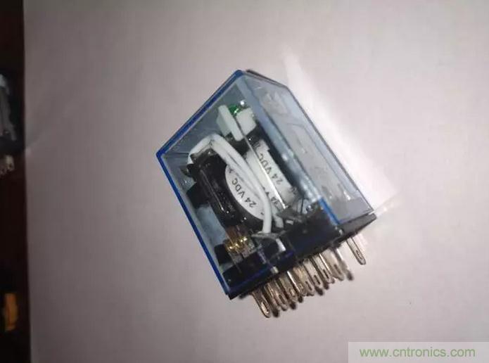 中間繼電器一般有2對觸點的和4對觸點的,下圖為4對觸點的中間繼電器: