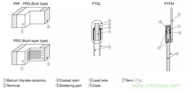 陶瓷PTC,其電阻材料是一種多晶體陶瓷,是碳酸鋇、二氧化鈦等多種材料的混合物燒結而成。PTC溫度系數具有很強的非線性,當溫度超過一定閾值時電阻會變得很大,相當于斷路,從而可以起到短路和過流保護的作用。