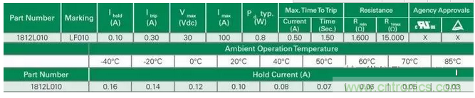 選用PTC的時候,首先要考慮設計工作電流,不能超過PTC保持電流,此時PTC可以保持低阻抗狀態。PTC的保持電流會隨著工作溫度的升高而降低,因此,工作溫度時需要考慮的重要因素。