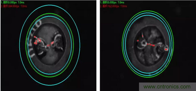 底部檢測不良品(磁芯破損)分析圖NG▼
