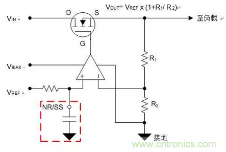 圖3:具有NR/SS引腳的NMOS LDO