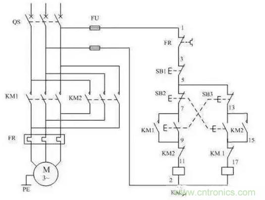 【導(dǎo)讀】以下將介紹電動(dòng)機(jī)可逆運(yùn)行控制電路以及電動(dòng)機(jī)可逆運(yùn)行控制接線示意圖,電路中采取可靠的互鎖,可防止電源的短路事故。
