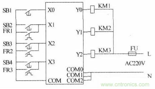 繼電器電路圖中的交流接觸器和電磁閥等執行機構用PLC的輸出繼電器來控制,它們的線圈接在PLC的輸出端。按鈕、控制開關、限位開關、接近開關等用來給PLC提供控制命令和反饋信號,它們的觸點接在PLC的輸入端。