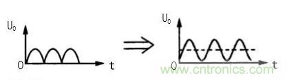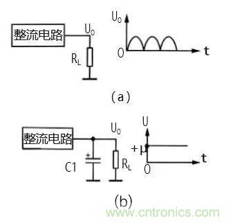 圖 2(a)為整流電路的輸出電路。交流電壓經整流 電路之后輸出的是單向脈動性直流電,即電路中的 UO。
