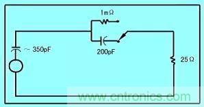 這些實驗數據可用其他方法來解釋。發射最小值(線電流為0的時候)是濾波器無偏置電流時表現出來的效果。峰值發射與最小發射的比率,即降級因子,用來衡量線電流偏移量對濾波器實際效果的影響。降級因子較大表明共模扼流圈磁芯完全沒有得到恰當的使用,較好的濾波器的“固有降級因子”差不多在2—4之間。它是由兩種現象產生的:第一,60Hz充電電流引起的電感減小(如上所述);第二,橋式整流器的正向及反向導通。共模發射的等效電路由一個阻抗約為200PF的電壓源、二極管阻抗和LISN的共模阻抗組成,如圖2所示。當橋式整流器正向偏置時,在源阻抗、25和LISN共模阻抗之間會產生分壓現象。當橋整流器反向偏置時,在源阻抗、整流橋反偏電容、LISN之間產生分壓現象。當二極管整流橋反向偏置電容較小時,對共模濾除有一定效果。當整流橋正向偏置時則對共模濾除沒有影響。