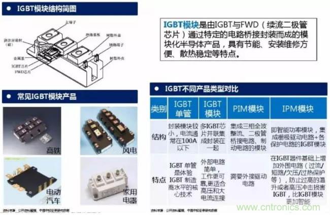 IGBT模塊是由IGBT與FWD(續(xù)流二極管芯片)通過特定的電路橋接封裝而成的模塊化半導(dǎo)體產(chǎn)品,具有節(jié)能、安裝維修方便、散熱穩(wěn)定等特點(diǎn)。