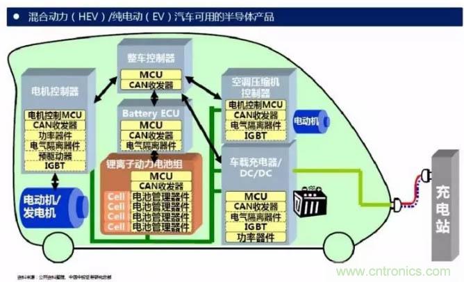 IGBT模塊在電動(dòng)汽車中發(fā)揮著至關(guān)重要的作用,是電動(dòng)汽車及充電樁等設(shè)備的核心技術(shù)部件。IGBT模塊占電動(dòng)汽車成本將近10%,占充電樁成本約20%。IGBT主要應(yīng)用于電動(dòng)汽車領(lǐng)域中以下幾個(gè)方面: