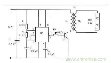 如圖1,樓道燈所具備的延時(shí)功能就是由555定時(shí)器構(gòu)成的單穩(wěn)態(tài)觸 發(fā)器來(lái)實(shí)現(xiàn)的。