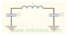 若經(jīng)過嚴格的物理理論推導和近似分析,可以把過孔的等效電路模型為一個電感兩端各串聯(lián)一個接地電容,如圖1所示。