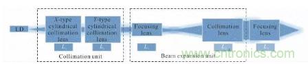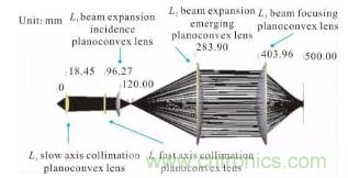 圖3 柱面透鏡對(duì)LD光束準(zhǔn)直示意圖