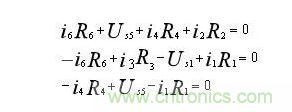 網孔1:I1R1-I2R2=Us1- Us2