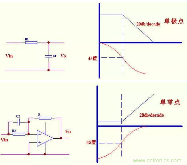 bode 圖可以簡單的判定電路的穩(wěn)定性,甚至可以確定電路的閉環(huán)響應(yīng),就向我下面的圖中表示的.零,極點說明了增益和相位的變化。