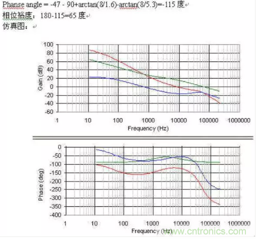 蘭色為功率部分,綠色為補償部分,紅色為整個開環(huán)增益.