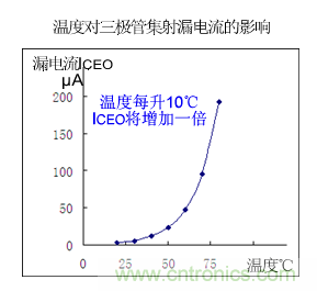 雖然常溫下硅管的漏電流ICEO很小,但溫度升高后,漏電流會高達(dá)幾百微安以上。