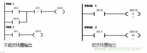 (2)梯形圖中同一編號的“繼電器線圈”只能出現(xiàn)一次,通常不能出現(xiàn),但是它的觸點(diǎn)可以無限次地重復(fù)使用。