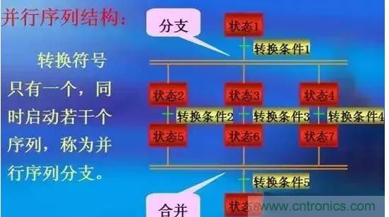 功能表圖的基本結(jié)構(gòu):單序列結(jié)構(gòu)、選擇序列結(jié)構(gòu)、合并序列結(jié)構(gòu)