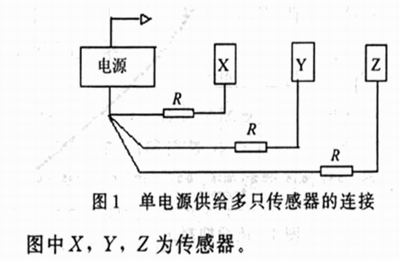 當使用單電源供給多只傳感器時,其連接方法如圖1所示,以盡量減少接地電阻引進的干擾,若供電電源的壓降必須減到最小,則電源高端導線也可按相似的方法接線。