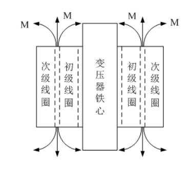 圖8是磁感應(yīng)產(chǎn)生傳導(dǎo)干擾的原理圖,圖8表示開關(guān)電源變壓器產(chǎn)生的漏磁通穿過其它電路時(shí),在其它電路中也產(chǎn)生感應(yīng)電動(dòng)勢,其中漏磁通M1、M2、M3產(chǎn)生的感應(yīng)電動(dòng)勢e1、e2、e3屬于是差模干擾信號;M5、M6、M7、M8產(chǎn)生的感應(yīng)電動(dòng)勢e5、e6、e7、e8屬于是共模干擾信號。