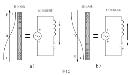 天線來回極化的工作原理可以等效成一個(gè)串聯(lián)諧振電路,當(dāng)天線在電場力的作用下被極化帶電時(shí),它又相當(dāng)于一個(gè)電容在充電;當(dāng)天線中的載流子在電場力的作用下來回移動(dòng)時(shí),它又相當(dāng)于一個(gè)電感,并且在天線的周圍會(huì)產(chǎn)生磁場。