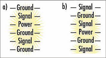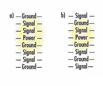 由於信號層和回路層之間總是隔有絕緣層,在10層板設計中分配中間6層來走信號線的方案并非最佳。另外,讓信號層與回路層相鄰很重要,即板布局為信號、地、信號、信號、電源、地、信號、信號、地、信號。
